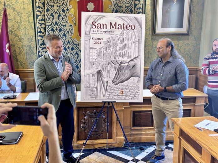 En un acto que rebosó emoción y expectación, se ha desvelado el cartel que anunciará las esperadas fiestas de San Mateo en Cuenca. La obra, diseñada por el talentoso artista Antonio Soriano, tiene como protagonista a una vaquilla que se encuentra bajo los arcos del Ayuntamiento, capturando la esencia del festejo taurino que caracteriza a estas celebraciones.