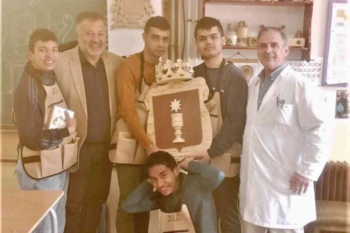 La ocasión fue aprovechada por los chicos del Taller de Carpintería para obsequiar al alcalde, un precioso escudo de Cuenca tallado por ellos, de la mano de su profesor Marcelo.