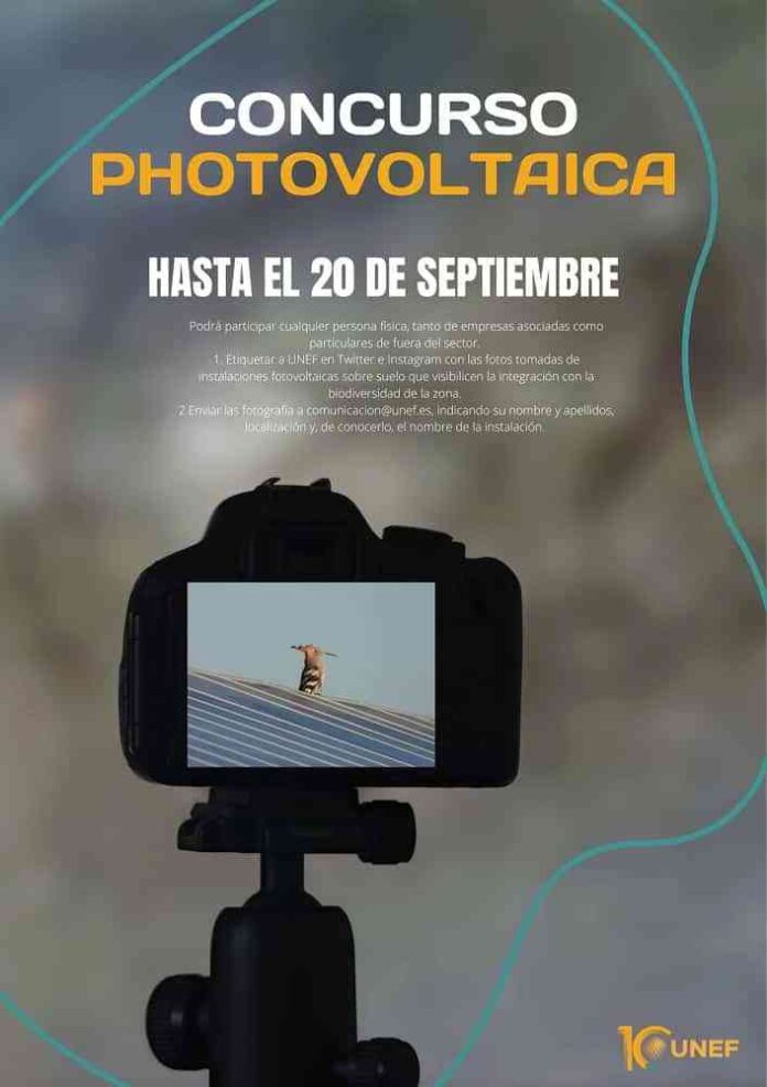 En esta segunda edición podrá participar cualquier persona física con una fotografía que ilustre la convivencia de la biodiversidad con los proyectos en suelo de energía solar. Para ello, deberán etiquetar a UNEF en Twitter e Instagram en fotografías que hayan tomado de instalaciones fotovoltaicas. Además, deberán enviar dicha fotografía a co**********@**ef.es, indicando su nombre y apellidos, localización y, de conocerlo, el nombre de la instalación antes del 20 de septiembre de 2022.