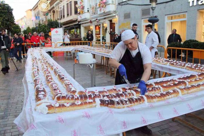 Los artesanos de la Pastelería la Rosa en Alcázar de San Juan han elaborado un roscón de 220 metros de longitud pensado para servir a 2.200 personas, que tiene un fin solidario a beneficio de Cruz Roja.