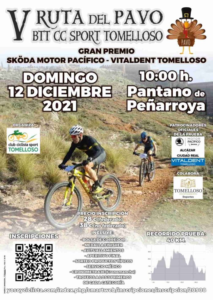 La V Ruta del Pavo BTT el domingo 12 de diciembre a las 10 horas organizado por el Club Ciclista Sport Tomelloso. Con la colaboración de la concejalía de Deportes del ayuntamiento de Tomelloso (Ciudad Real). Esta prueba es para participantes a partir de los 18 años. La que se llevará a cabo en el pantano de Peñarroya.