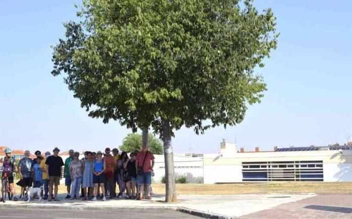El grupo de Medio Ambiente de la asociación de vecinos El Tajo de la capital regional ha convocado al vecindario del barrio del Polígono a cobijarse debajo de un árbol, para pedir a las administraciones públicas y, en este caso al Ayuntamiento, que dentro de sus competencias medioambientales elabore un plan de regeneración árborea en la ciudad en el marco de la lucha contra el cambio climático.