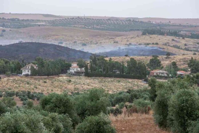 Veinte personas y cinco medios trabajan en extinguir el fuego que originó este viernes en la Finca Zurraquín en Toledo, y sobre el terreno ya no trabajan medios aéreos, según informa el Sistema de Información de Incendios Forestales de la Consejería de Desarrollo Sostenible.