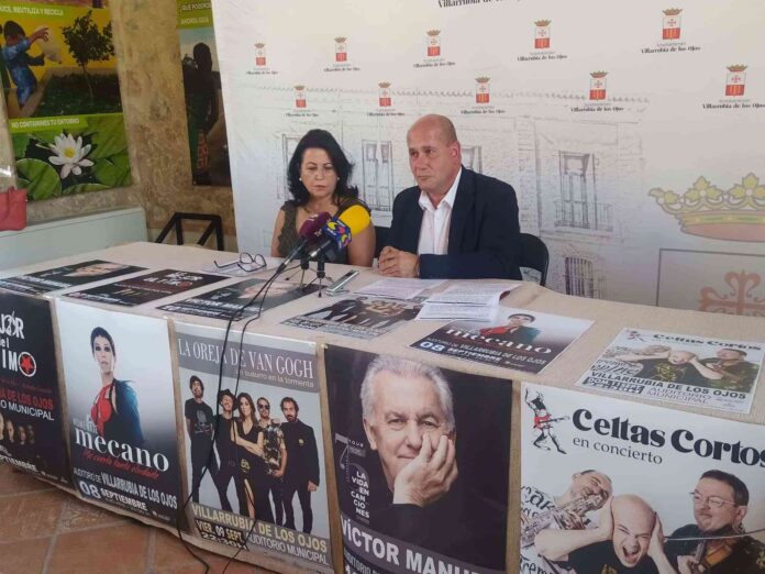 El alcalde de Villarrubia de los Ojos, Miguel Ángel Famoso Fino, y la concejala de Festejos, Magdalena Benito Carretero, han presentado hoy en el Museo Etnográfico las fechas de estos conciertos, que acogerá el municipio y que tendrán lugar en el Auditorio Municipal.