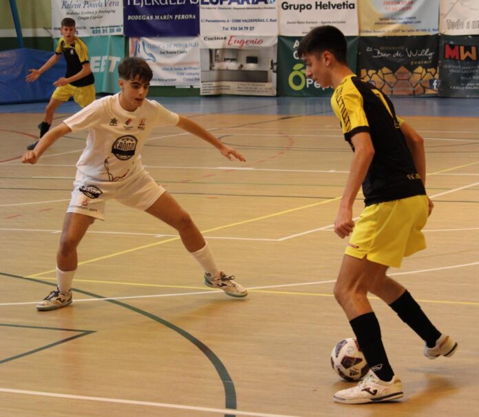 El pasado sábado 6 de abril La Molineta fue el escenario de los partidos de fútbol sala de los equipos juveniles masculinos del Club Deportivo VivELA Quijote. Por un lado, el Domino’s Pizza VivELA Quijote “A” recibía al líder de la categoría, el Villacerrada F.S. Por otro lado, el equipo del Rte. Casa Cañitas VivELA Quijote recibía al Renacer Argamasilla.