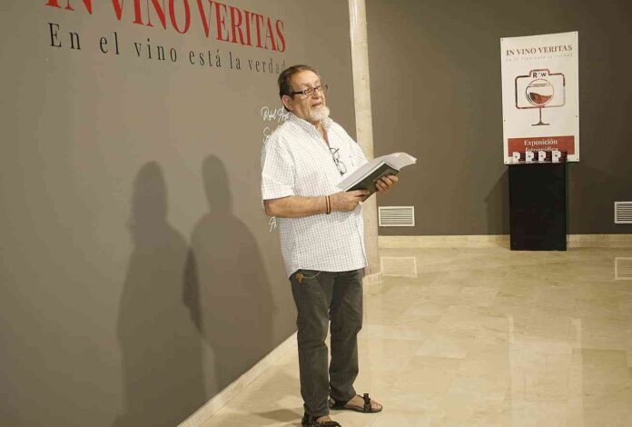 El acto se iniciaba con la bienvenida conjunta de José Andrés Gallardo De La Sierra-Llamazares, presidente de Raw Colectivo Fotográfico y de Juan José Guardía Polaino, quien dijo que la exposición fotográfica le recordaba “el secreto milenario del corazón de aquellos que han vivido y viven sin fronteras. Ellos bendicen en sus silencios «el fruto más antiguo y hermoso de la tierra»; ellos son (todos somos) ángeles dulcemente heridos por aquella sentencia que un lejano día, Plinio el viejo, lanzara sobre la historia de los dioses y los hombres: «IN VINO VERITAS, en el vino está la verdad». Así, en el vino, en vuestros ojos y en mi verso también habita la verdad”.