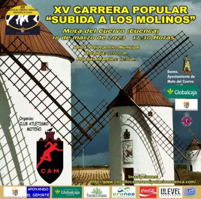 Este 18 de marzo se celebra la Carrera Popular Subida a los Molinos en la que es su XV edición. La misma tendrá lugar en Mota del Cuervo (Cuenca) a partir de las 17:30 horas.