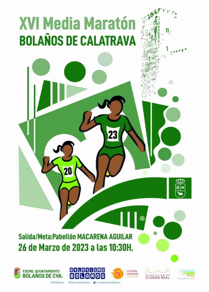 Llega este 26 de marzo, la Media Maratón Bolaños de Calatrava 2023, que es la tercera carrera del Circuito de Carreras de Ciudad Real 2023. La misma tendrá lugar de 10:30 a 13:00 horas. Organizada por el ayuntamiento de Bolaños de Calatrava.
