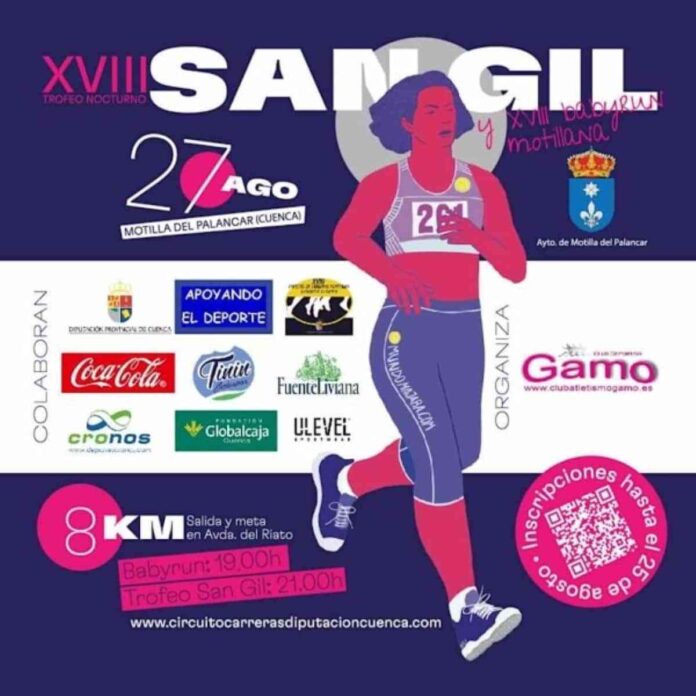 El XVIII Trofeo Nocturno San Gil se realizará el próximo 28 de agosto a las 21 horas en Motilla de Palancar (Cuenca). Ese mismo día tendrá lugar la XVIII Babyrun Motillana que será a las 19 horas. Ambos con el apoyo del ayuntamiento de Motilla del Palancar. Y dentro del Circuito de Carreras de la Diputación Provincial de Cuenca.