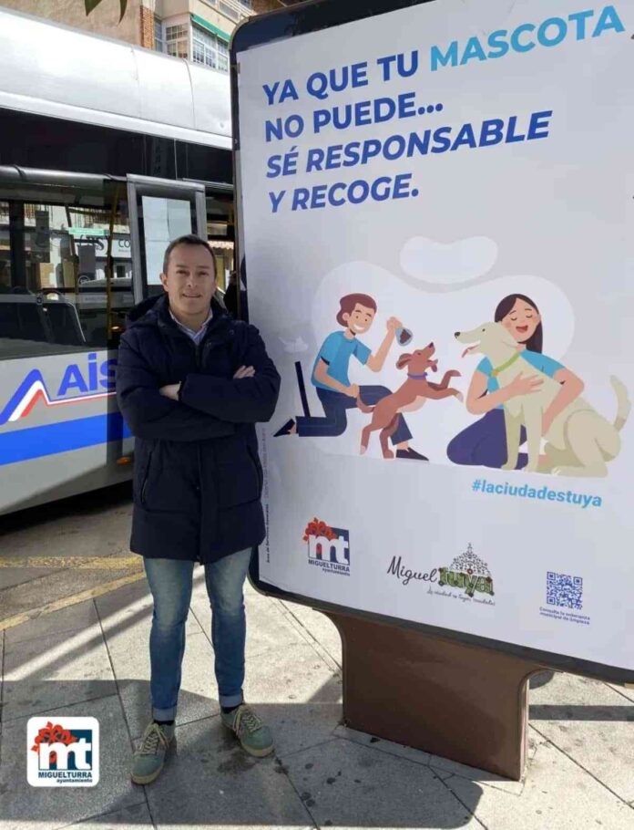 La nueva campaña denominada “Ya que tu mascota no puede, sé responsable y recoge” fue presentada por el concejal de Servicios, Diego Rodríguez. La misma es una campaña municipal en Miguelturra (Ciudad Real) de limpieza viaria, concienciación y sensibilización.